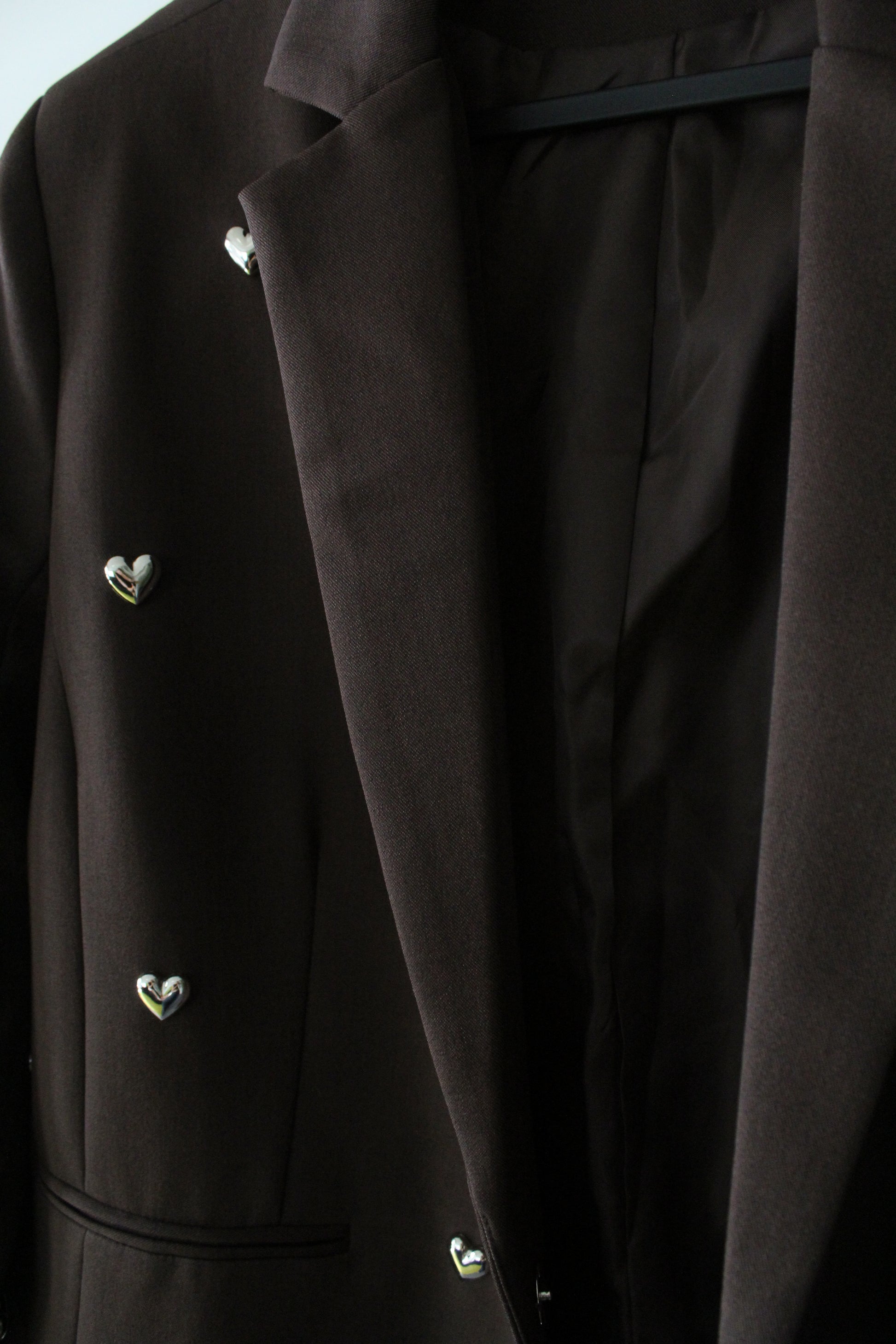- Blazer orné de cœurs en acier inoxydable argenté, devant et derrière