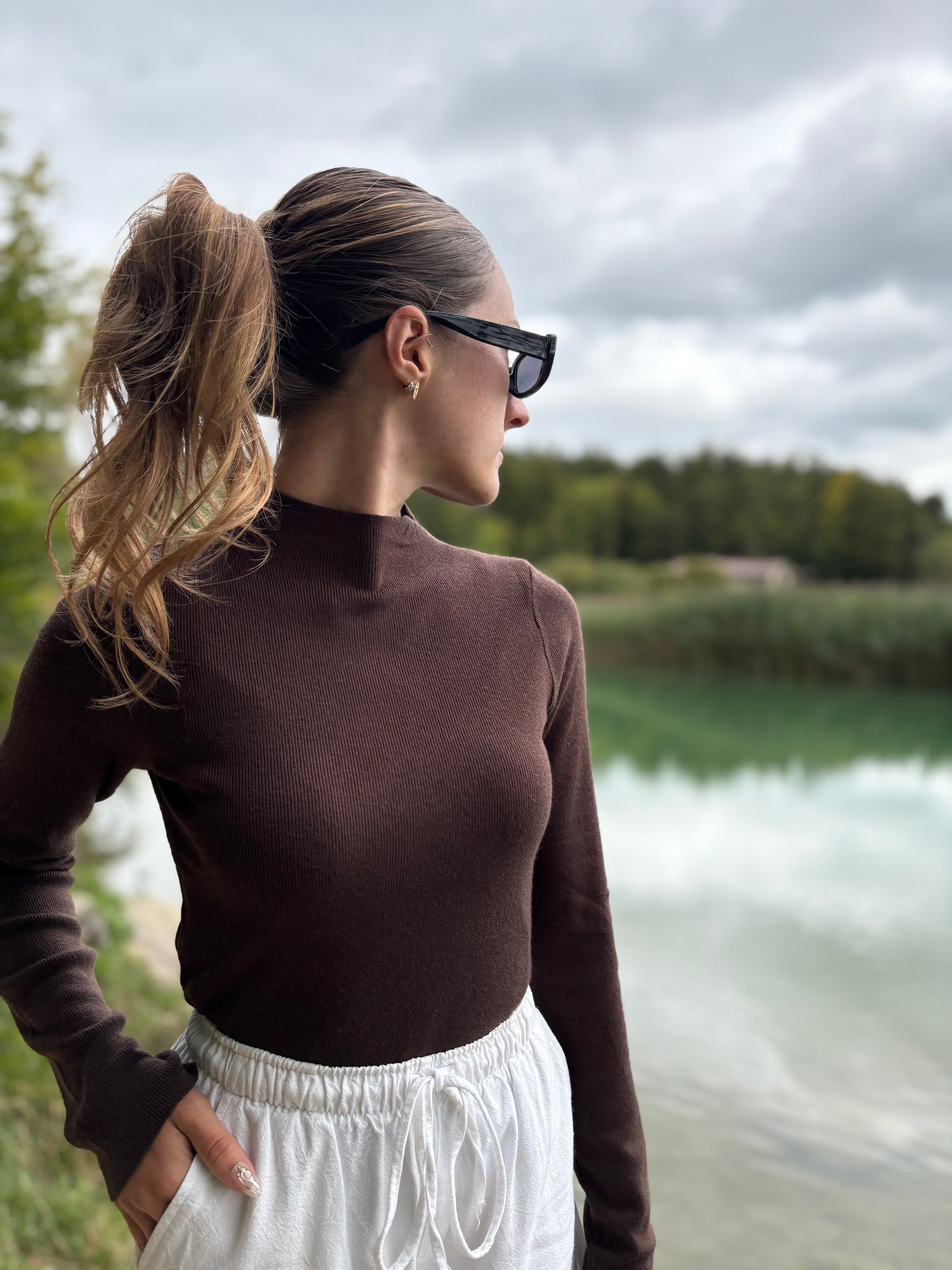 Notre modèle mesure 1m57 et porte habituellement du XS en bas et du S en haut.